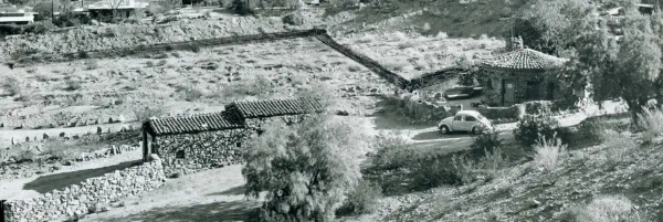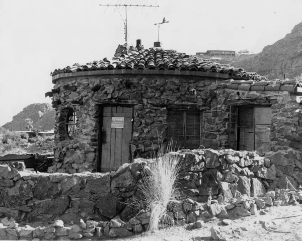 The Araby Rock Houses in the 1970s. The other rock houses are to the right outside the frame. | Courtesy of Palm Springs Historical Society. All Rights Reserved.